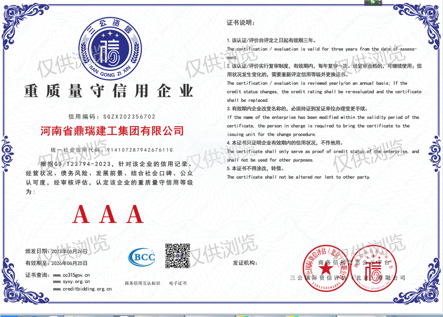 建筑業企業資質證書